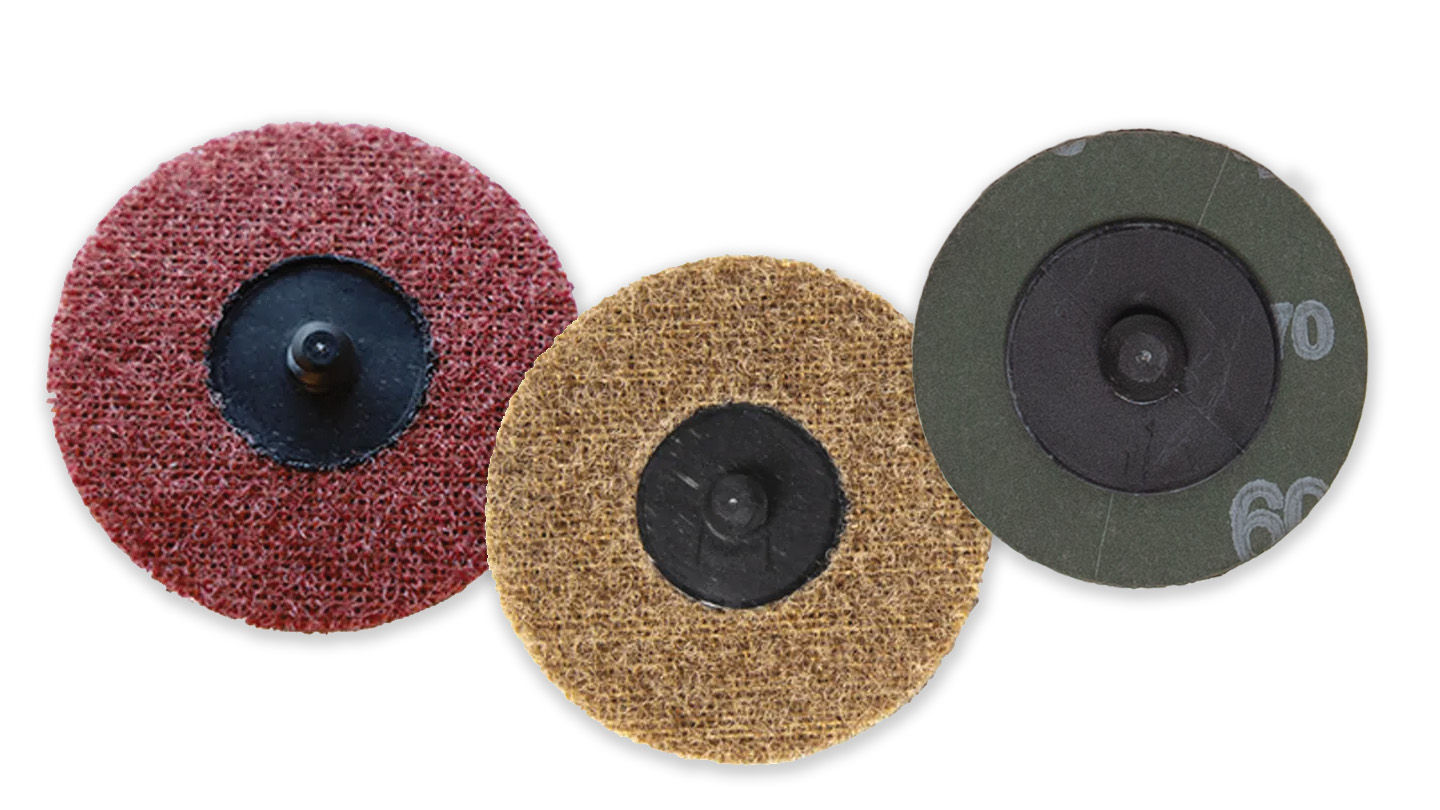 Ceramic Quick Discs feature self-sharpening grains for aggressive stock removal and extended durability. Surface Prep Quick Discs use aluminum oxide grains to clean and prep surfaces with minimal heat buildup, preserving finish quality.